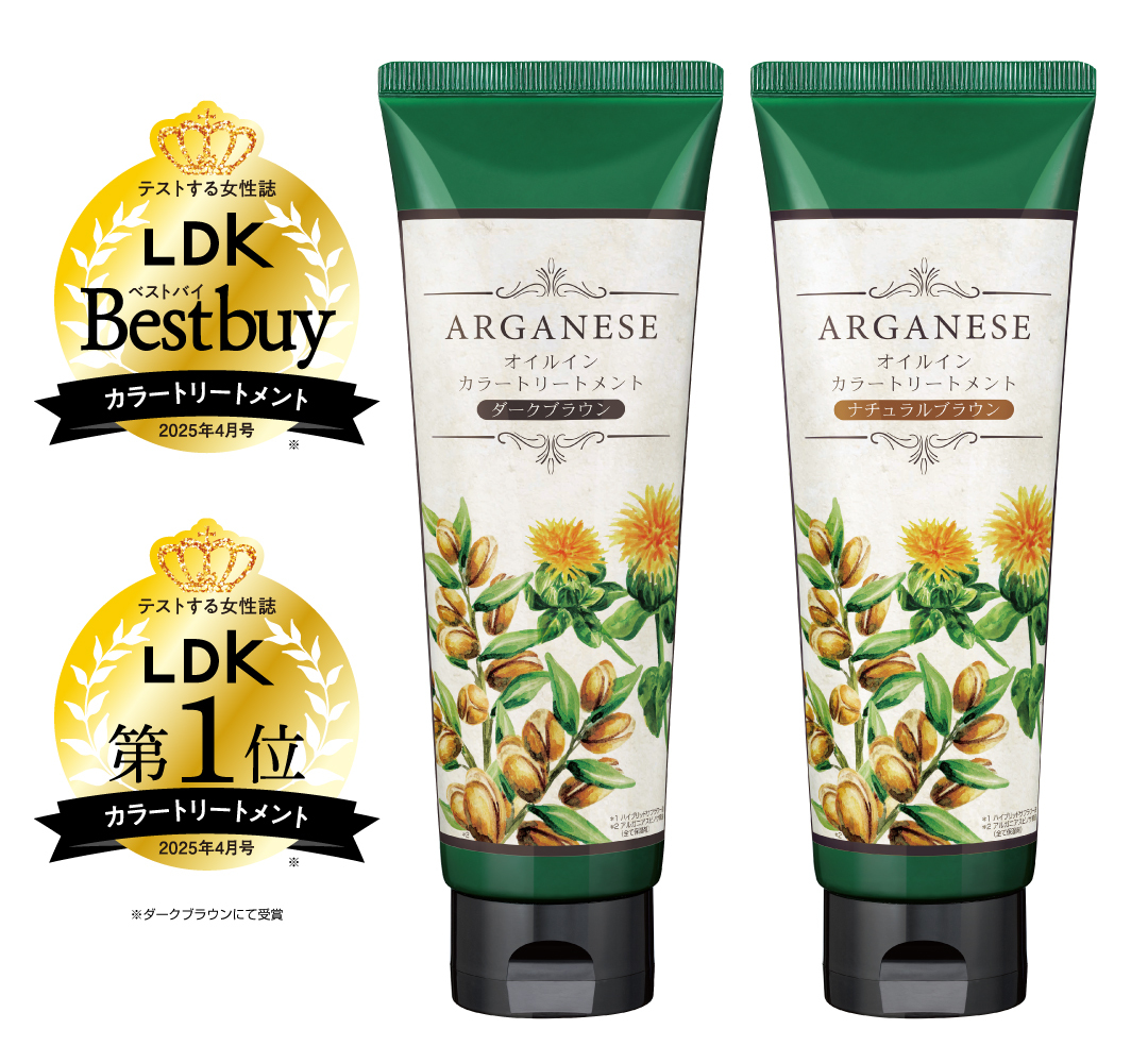 「アルガネーゼ オイルインカラートリートメント ダークブラウン」が、テストする女性誌「LDK 2025年4月号」カラートリートメント部門で「ベストバイ」&「1位」をW受賞しました。