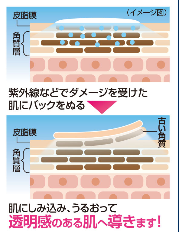 有効成分ホワイトプラセンタ、ブライト成分(2種のビタミンC誘導体:L-アスコルビン酸2-グルコシド、リン酸L-アスコルビルマグネシウム(保湿成分))。異なる成分が角質層をうるおいで満たしてくすみ感のない透明肌へ導きます。