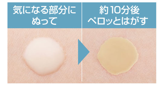 使い方はとても簡単、気になる部分に塗り、乾いたらやさしく剥がすだけ。