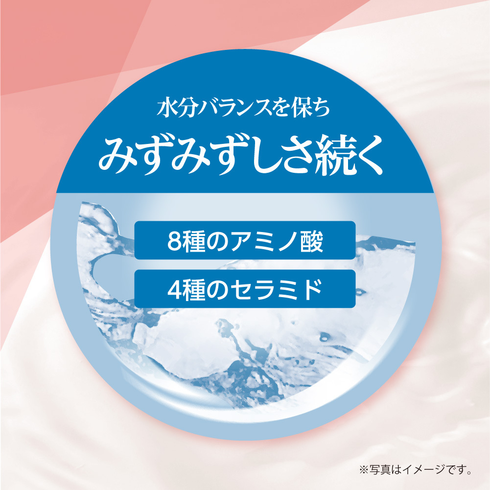 8種のアミノ酸や4種のセラミド配合で、肌の水分バランスを保ち、みずみずしさが続きます。