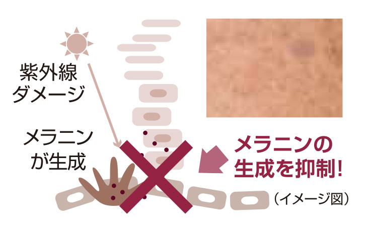 *メラニンの生成を抑え、シミ、そばかすを防ぐことです。